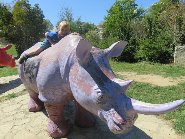 Then we headed to one of our faviourite parks - Palais Longchamp - this time we found the zoo - well a couple of hundred years ago it was a real zoo but now there is a zoo of fake life-sized animals. The kids had fun climbing over them; playing tag and we had our picnic lunch there.